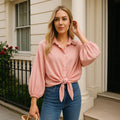 Chiffon Tie-Waist Blouse – light, elegant & flattering. Perfect for UK women’s office wear, summer days & evening chic. Shop timeless style now!